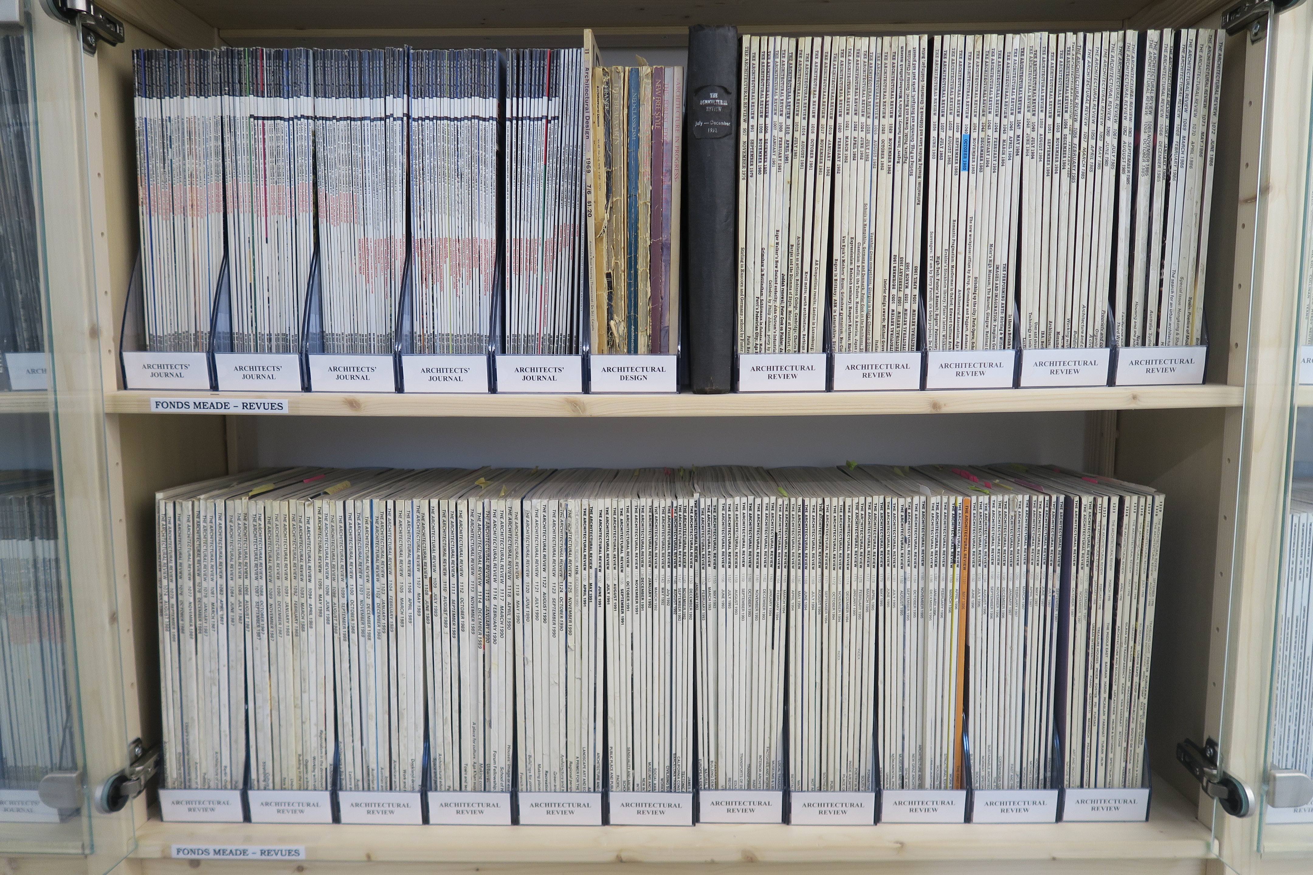 Le fonds Meade a été acquis en 2016 grâce au don consenti par les ayants droit de l’historien de l’architecture britannique Martin Meade (1945-2015). L’ensemble est constitué d’environ 1900 ouvrages et guides d’architecture comprenant plusieurs catégories thématiques renvoyant à l’histoire de l’architecture britannique, française et indienne, dont certains sont anciens (XVIIIe et XIXe siècles). Une collection de 1200 revues parmi lesquelles figurent des périodiques britanniques, tels qu’Architectural Review et Architect’s Journal, une douzaine de boîtes d’archives et un petit ensemble iconographique composé d’estampes, de diapositives et de photographies complètent le tout.