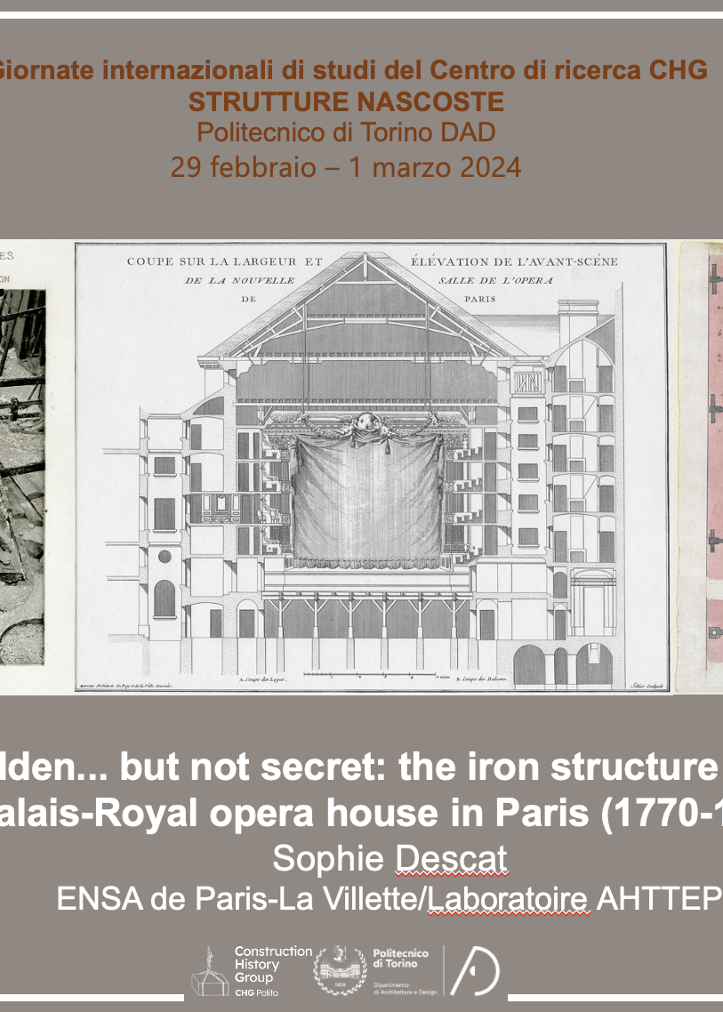 Sophie Descat Hidden... but not secret : the metal structure of the Palais-Royal opera house in Paris (1770-1781) Communication, lors des journées d’étude « Strutture Nascoste », CHG du Politecnico di Torino, mars 2024