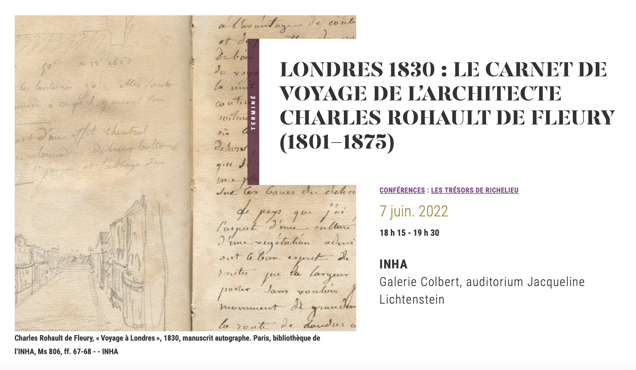 Visionner en ligne : https://www.bnf.fr/fr/mediatheque/londres-1830-le-carnet-de-voyage-de-larchitecte-charles-rohault-de-fleury-1801-1875